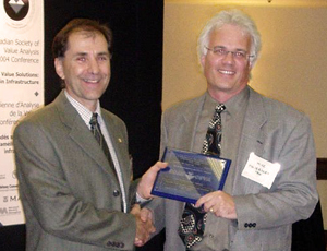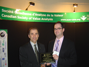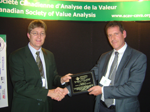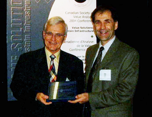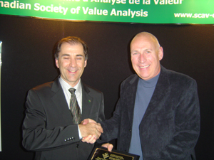 Canadian Value Award (CSVA Life Value Achievement Award) in recognition of your exceptional contribution to the advancement of Value Management and support to the Canadian Society of Value Analysis / CSVA. Presented to: Robert Sproule